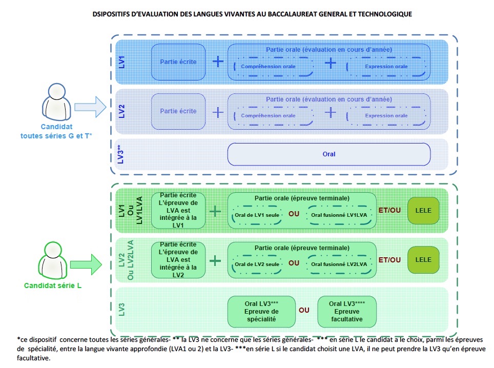 Voici la foire aux questions (FAQ) rédigées par Eduscol expliquant les types d'épreuves de Langues Vivantes pour chaque série, les coefficients, épreuves obligatoires et facultatives, etc...